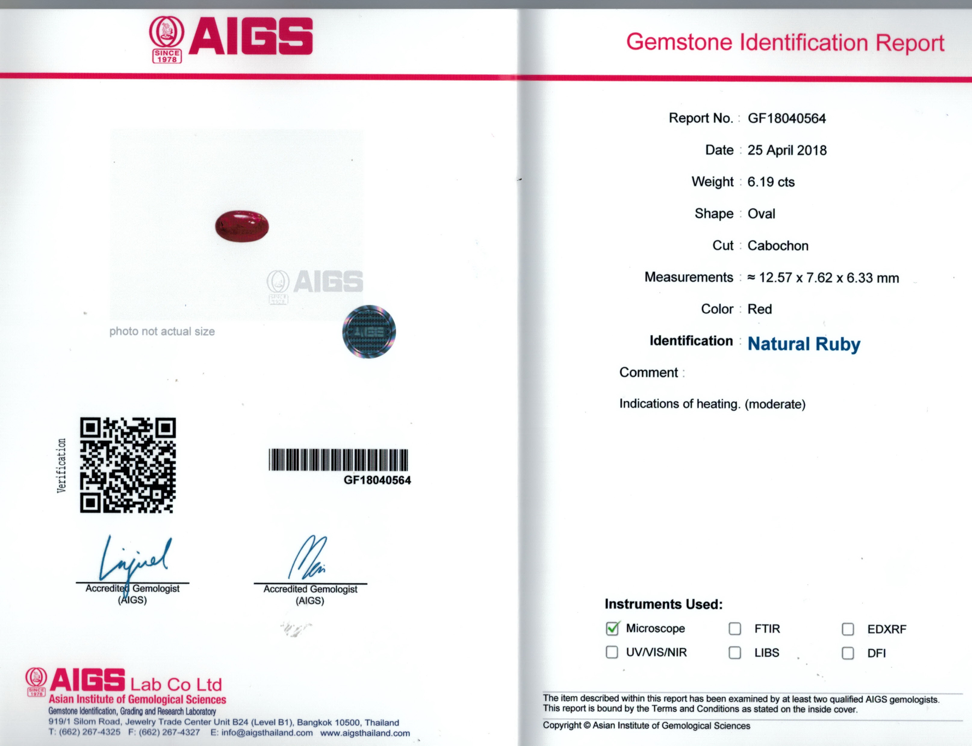 AIGS report No. GF18040564