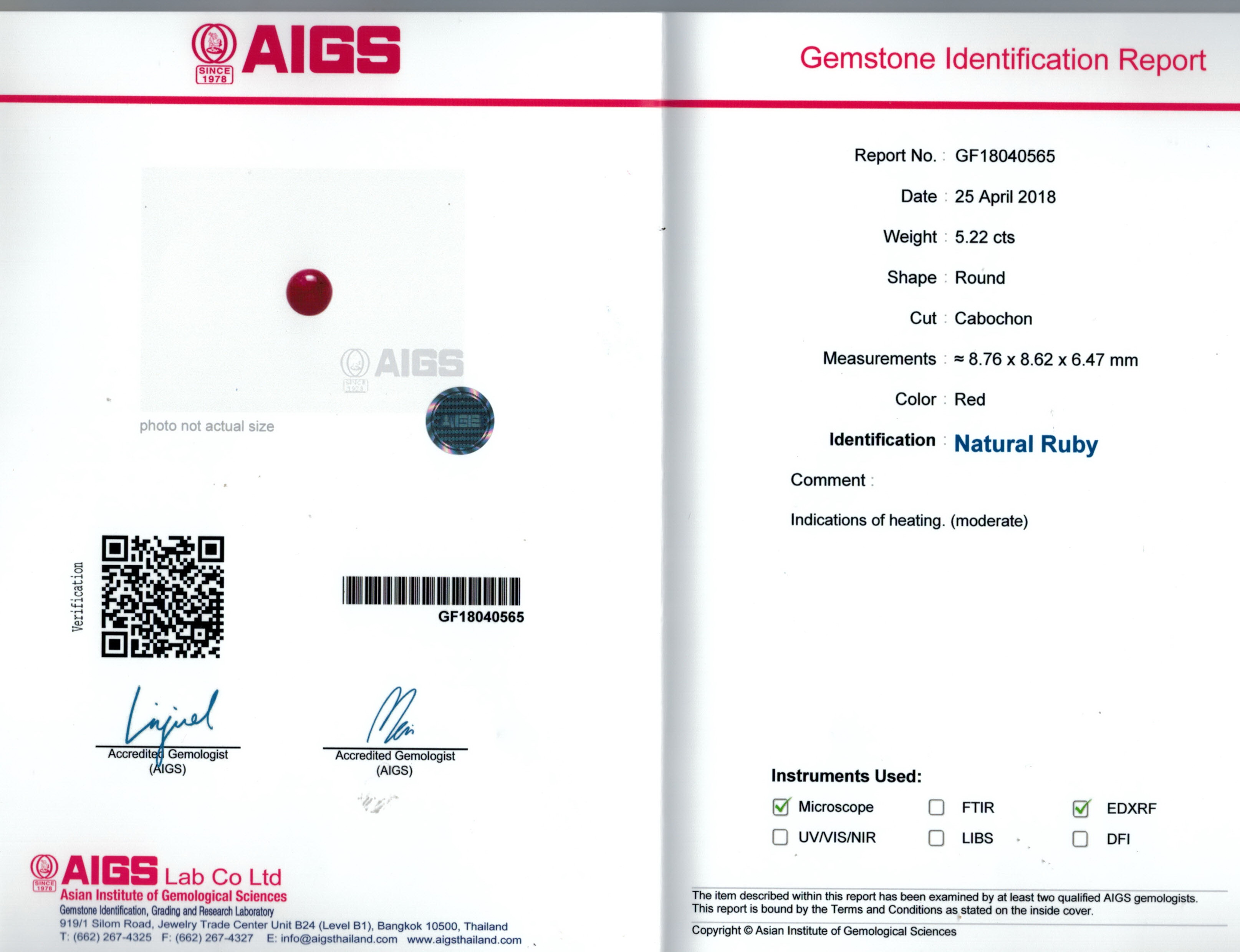 AIGS report No. GF18040565