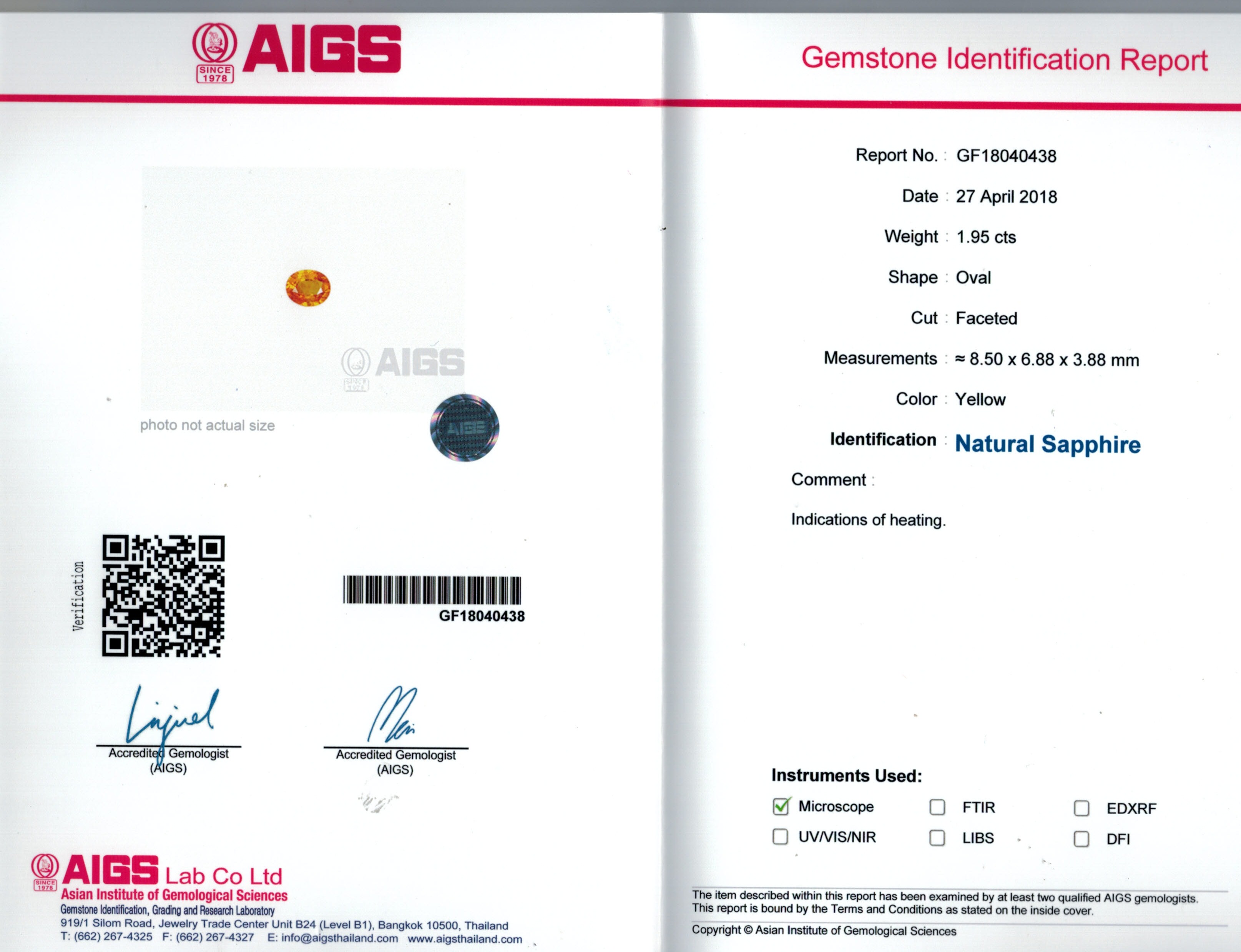 AIGS report No. GF18040438
