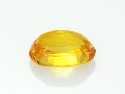 An attractive medium yellow tone with a lively hue. The excellent clarity gives the stone a clean bright brilliancy. There are abraded facet junctions so repolishing is highly recommended. Oval shaped with good symmetry.