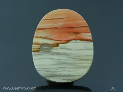 โอวี่ พิกเจอร์ แจสเปอร์ลายคล้ายมีรูปวาดพระอาทิตย์ตกดินอยู่ด้านบนหิน จากรัฐโอเรกอน ประเทศสหรัฐอเมริกา