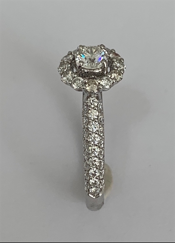 Cut diamond ring halo total weight .95 ct in 18K gold