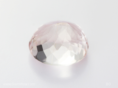 คุนไซต์สีชมพูอ่อน มีตำหนิเล็กน้อย เจียระไนรูปไข่