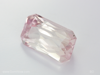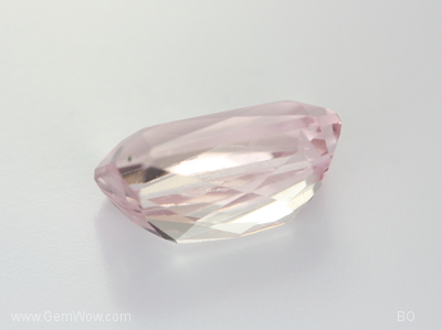 คุนไซต์สีชมพูอ่อน มีตำหนิเล็กน้อย เจียระไนได้สัดส่วน