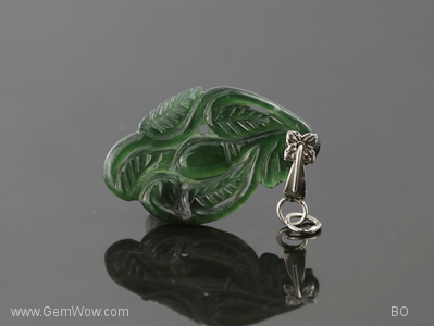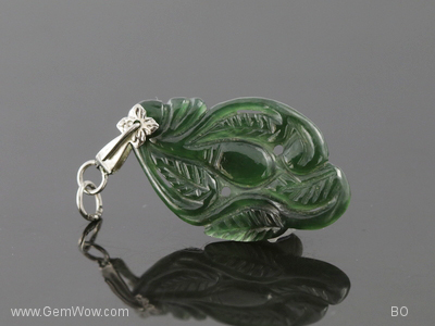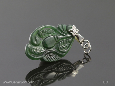 Natural Deep Green Lucky Orb and Leaf Motif Jade Pendant