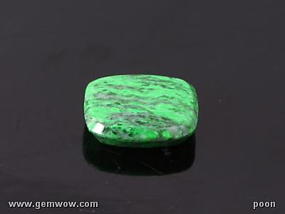 This decorative gemstone can be found in only one place in the world: in a place in Northern Burma called Mawsitsit. Rare and beautiful, mawsitsit is a combination of a rare pyroxene (green color) called ureyite and natrolite (lighter green) which looks similar to jadeite. Its vivid green coloring, delicate polish and waxy luster make it a real eye catcher. Every stone is unique with its individual patterns making the gem a favorite with the designers.