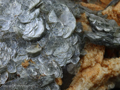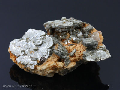 A fascinating piece of pegmatite! Here is some very sparkly silvery mica plates sitting on top of a iron stained feldspar and quartz host. The mica looks a lot like masses of coral heads under the sea. A wonderful form.