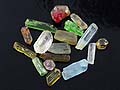 A well formed hexagonal beryl crystal with pinacoid termination. This specimen shows a small twin near the base and patchy staining along its length.