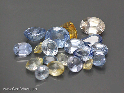 พลอยล็อตนี้มีทั้งหมด 19เม็ด (29.44 กะรัต) แต่ละเม็ดมีสีและรูปร่างแตกต่างกัน มีทั้งใสไร้สี น้ำเงินอ่อนจนถึงน้ำเงินกลางๆและสีเหลือง