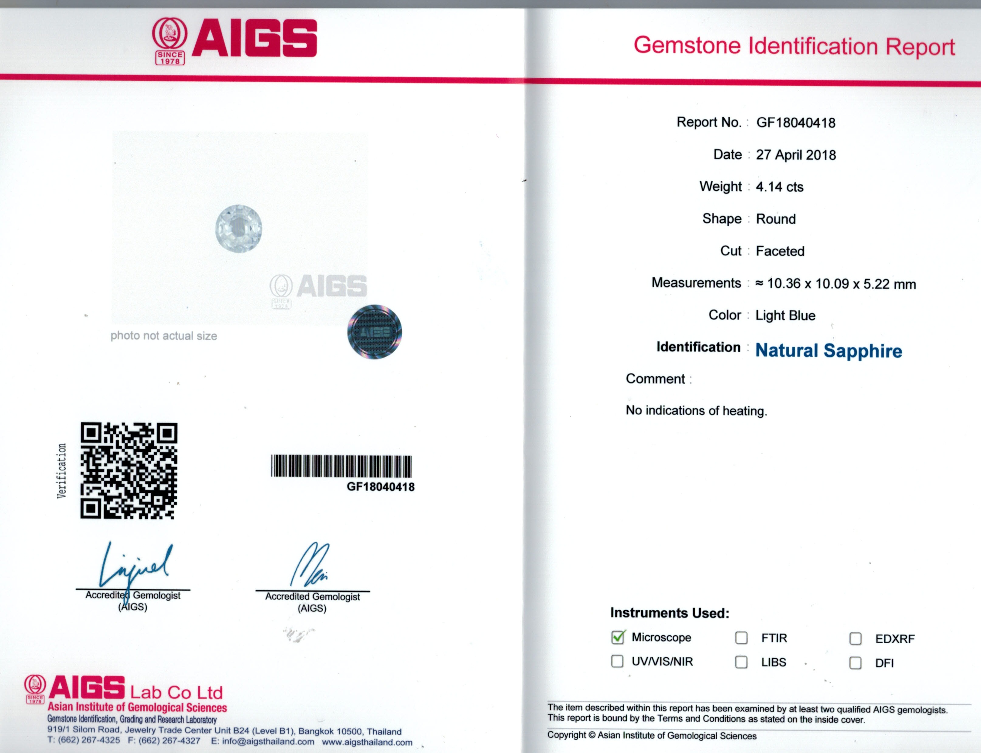 AIGS report No. GF18040418
