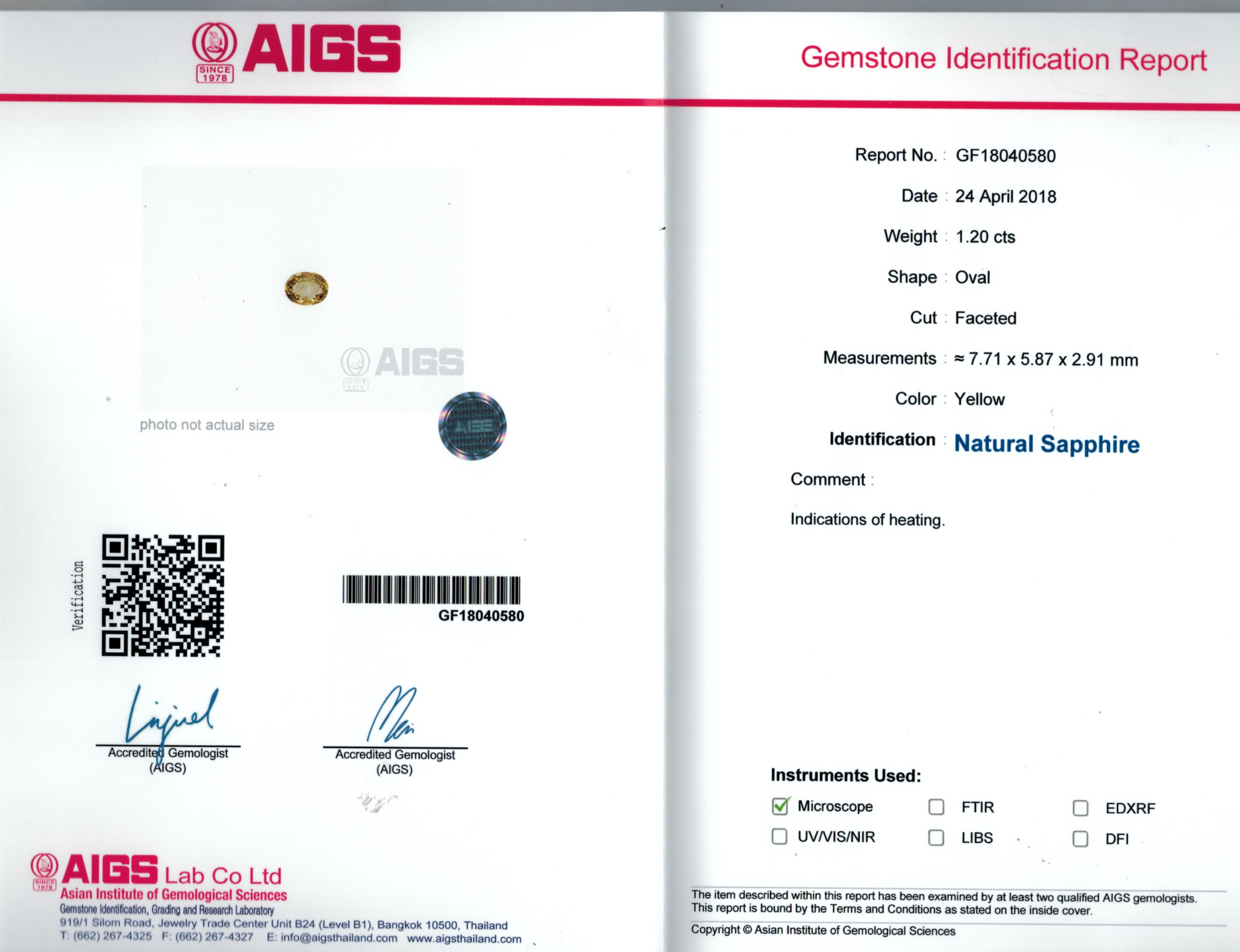AIGS report No. GF18040580