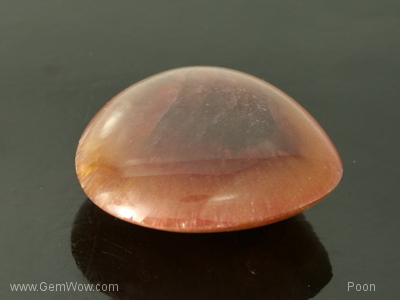A handsome piece indeed. Brown with tint of pink hue, the stone has a good polish and shape. Underneath the "skin" there are hundreds of tiny shiny bubbles-like bright spots" rising to the surface. A good size for a pendent and feels good just having it in your palm. We have not seen stones like this too frequently. Weighs 128.40 carats and reported to have originated from Mogok in Burma.
