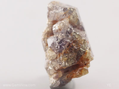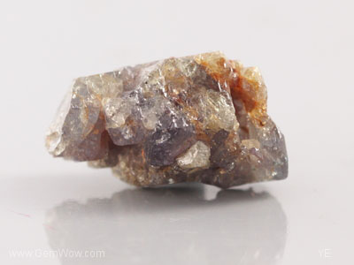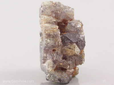 Here is a cluster of light violet colored sapphire crystals. This group has many fractures that has allowed some of the crystals to be iron stained to a orangy color. Some crystal faces are visible for study as well. A nice example of intergrown sapphires. |