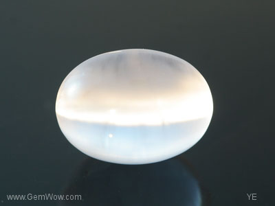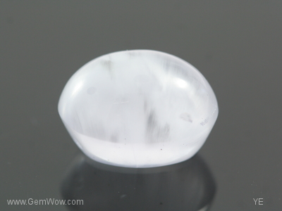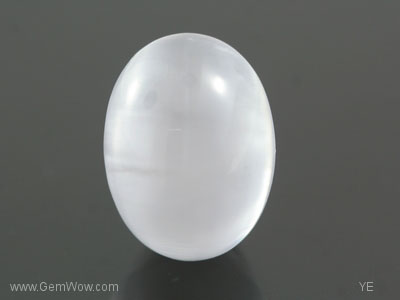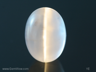 Amazingly beautiful and especially when seen under white light, this slightly purplish "electric" grey cab cat's eye scapolite weighs 15.62 carats. The beauty of this piece lies in the "shimmering" quality observed in one half of the gem separated by an stunning sharp eye and the other half of the stone which looks transparent and clear. The fibrous nature of the inclusions gives rise to a rare and unique "chatoyant" phenomenon that seems to move like "silvers of fire".