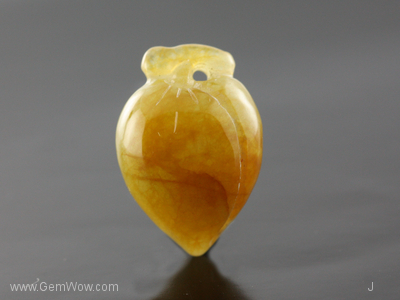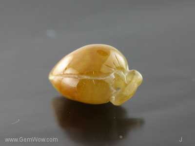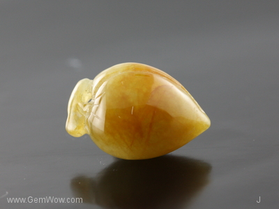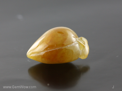 หยกแกะสลักจากประเทศพม่า แกะเป็นรูปลูกพลัมจีน มีเหลืองน้ำตาล มีสีเขียวบางจุด