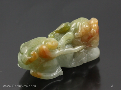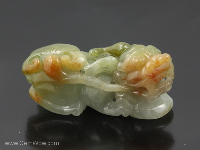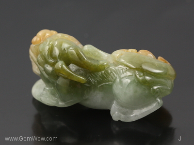 หยกแกะสลักรูปสิงห์หัวมังกร คนจีนมีความเชื่อว่าสามารถที่จะใช้ปัดเป่าและป้องกันผู้สวมใส่จากสิ่งชั่วร้าย จากปีศาจได้ |