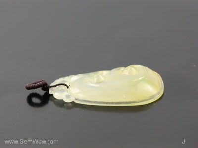 หยกเจดไดร์ทชิ้นนี้เนื้อดีโปร่งแสง สีเหลืองทองสวยงาม เป็นหยกที่มาจากประเทศพม่าแหล่งของหยกคุณภาพดี |