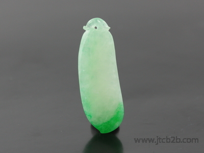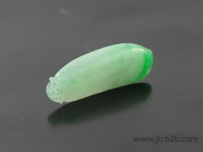 An attractive vivid intense green hue tip of a melon shaped jadeite carving. Nice texture, transluscency, medium to fine granulation and high lustre polish. Exceptional beauty! Wow again! |