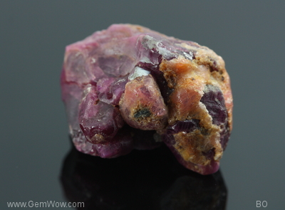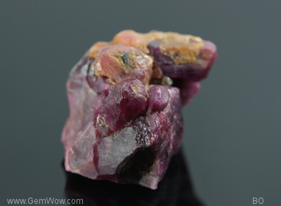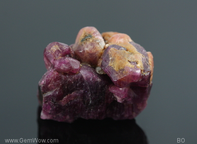 This is dark purple red ruby with good luster weighing over 139carats. It is an aggregate of the ruby crystal. Some shows hexagonal prisms with pinacoid which is typical ruby crystal system. When they get together, here they make an interesting specimen. You will find something new on every glance.[es] |